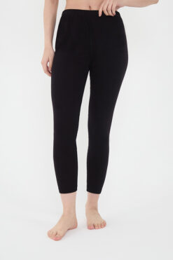 Kadın Siyah Yün Tayt, rahatlığı ve şıklığı bir araya getiren tasarımı ile her yaş grubundan kadının favorisi olacak nitelikte. Esnek yapısı sayesinde hareket özgürlüğü sunar. Gündelik işlerinizde, yürüyüşte, sporda ya da evde vakit geçirirken bu tayt ile maksimum konforu hissedersiniz. Yüksek bel tasarımı, belinizi saran yapısıyla ekstra destek sağlar ve vücut hatlarınızı toparlar. Aynı zamanda bu özelliği, soğuk havalarda bel bölgenizi koruyarak ekstra sıcaklık sağlar.